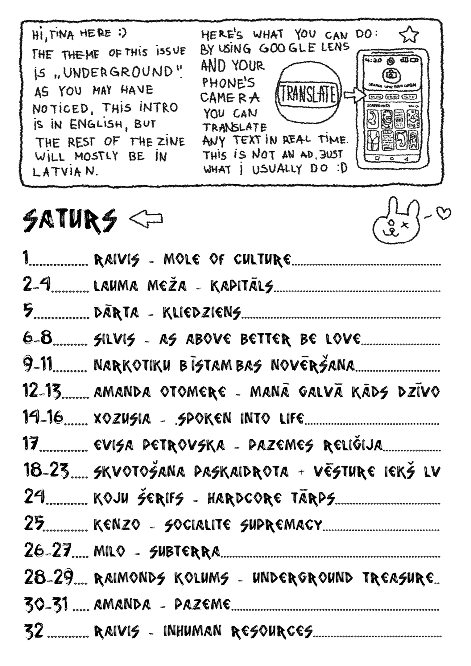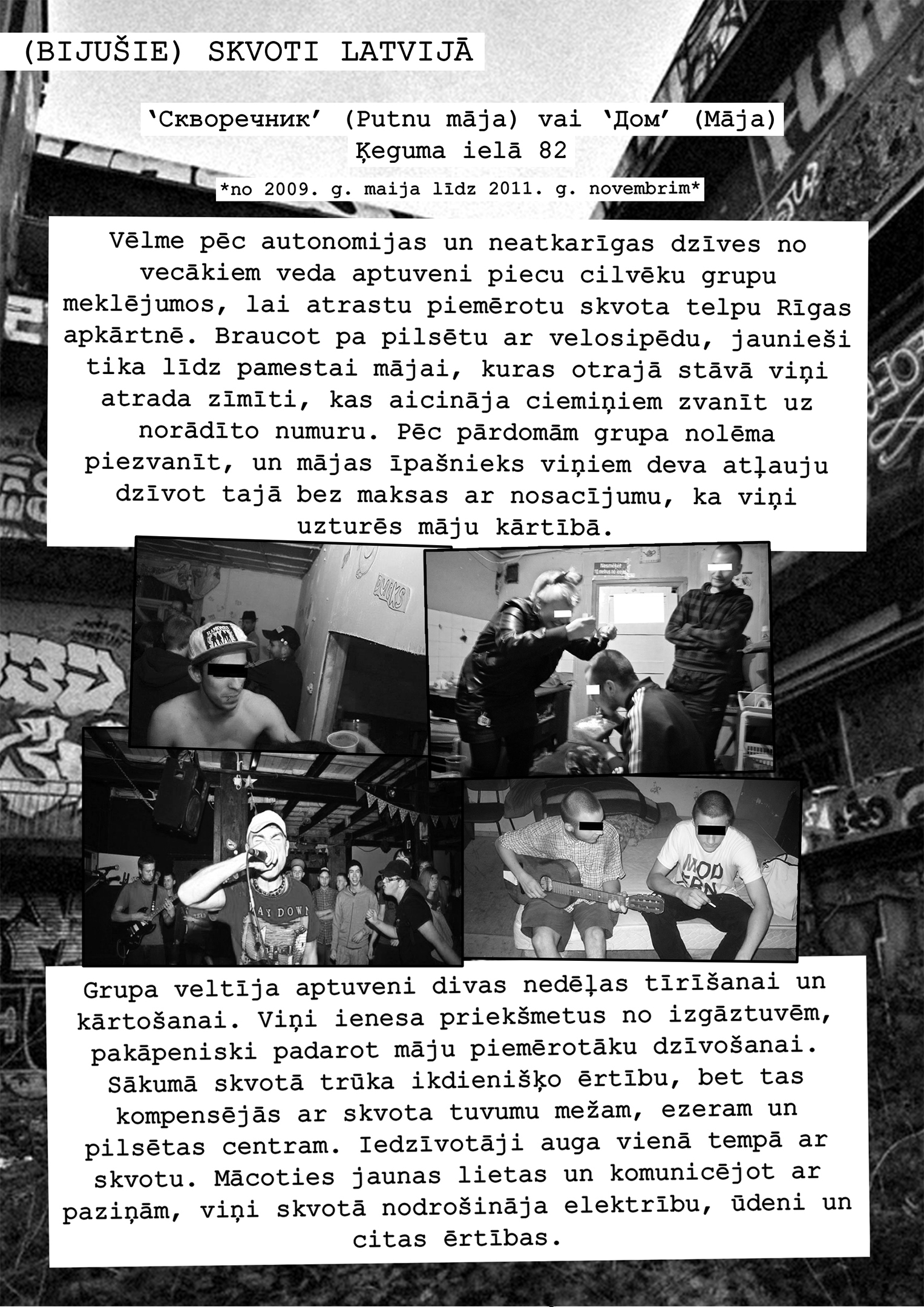 The zine also includes two informative articles: “Drug harm reduction” by Vents Arnolds Dalbiņš and “Squatting explained + history of squats in Latvia” written by Krak Lauma and Raivuha. These articles are in Latvian.